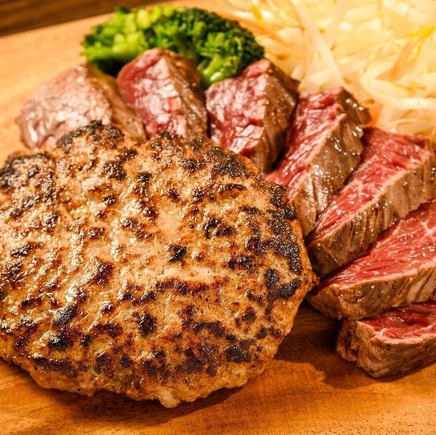 大人気のハラミを使用したインディアンズステーキ(150g)と合い挽き肉汁爆発ハンバーグ(200g)がコンボになった二度楽しめるお得なコンボ♪※画像はイメージです。